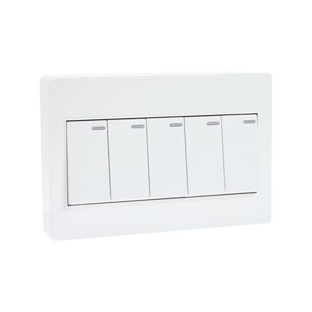 ปลั๊กและสวิตช์ไฟฟ้า ชุดสวิตช์ 1 ทาง 5 ช่อง HACO M4N-S51 สีขาว